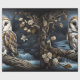 Cute Wrapping Paper Flat Sheet Set of 3 Owl on Branch in Moonlight