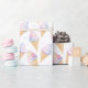 Wrapping Paper for birthday with sweet and delicious ice cream, drawn in soft pastel colours in watercolor style.