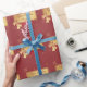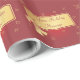 A rich, reddish, burgundy provides a beautiful backdrop to faux metallic gold stars, bow and "label" area. Inside the golden frame, your colour-matched, Christmas or holiday salutations. This gorgeous, design is tiled and repeated across the length of this fabulous holiday wrapping paper.