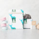 This gift wrapping paper is shown in white with a heard of blue to green elk/deer with their antlers. repetitive print.