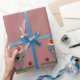 Winter holidays wrapping paper with cute bat drawing for New year or Christmas special gift wrapping.
