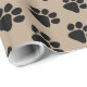 An excellent choice for pet owners -- go ahead and put the paw prints on ahead of time! Charming paw prints parade over this delightful wrapping paper. Shown on a taupe-ish backdrop, you are welcome to change the background colour to suit your preferences.