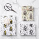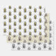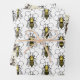 Yellow and black Bee sitting on honeycomb. Image in staggered tile pattern on white background. 2nd sheet has white and black bee on pale yellow background. 3rd sheet is black bee image on white.