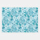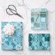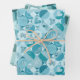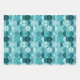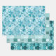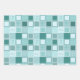 wrapping paper set of 3 sheets with various designs, sircles, squares, ornaments, teal colour tones