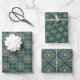 Wrapping paper sheets, blue and green set of 3