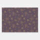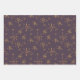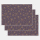 Wrapping paper sheets in a set of three with witch hazel floral design on a dark purple background.