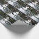 Cheery Snow Lady in the winter's night with rocks for eyes, nose and buttons, branches for smile and arms, spruce branches for scarf and dress, and a seashell and green bush topper hat. Text saying, Season's Greetings in a white font colour. Keep the saying, or PERSONALIZE the text box and insert YOUR own message. Lovely wrapping paper for special Christmas holiday gifts for family and friends. Original Photography © TamiraZDesigns.