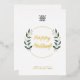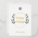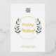 Wish a happy holiday to your business associates and your employees with this elegant simple modern holiday card. Featuring your custom logo, it will create the perfect holiday feeling to everyone who receives it. This classy and festive clean minimalist card has a watercolor leaves wreath graphic with real gold foil pressed elements on a airy clean white background, stylish yet elegant Happy Holidays text in a great circular frame. The back side has custom wording. This Happy Holidays card template is ready for your online personalisation. The gold foil can be changed to rose gold or silver.