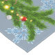 Simple and classy decoration for Holiday Christmas Wreath garland tablecloth. Great for Christmas pictured grey colour combination that you can change to suit your indoor or outdoor party themes. Shiny Christmas white lights, candy canes, Christmas bulbs decorated vibrant green pine branches and snow flakes. Christmas décor for indoor or outdoor. You and customise the colour of the border, or the style of the table cover to suit your taste. Simple elegant design for the holiday season for the home. Great gift idea for those that love holiday decorating and unique tablecloths. You can add text to this festive scene or leave blank.