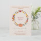 A Fall & Kraft Bridal Shower Invitation in autumn colours with a wreath and its maple, beech, oak and hazel leaves, mushroom, acorn, pumpkin, chestnuts and walnuts. For a party on the theme of nature and the forest!