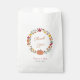 A Fall thank-you Favour Bag on the theme of nature and the forest with a wreath and its maple, beech, oak and hazel leaves, mushroom, acorn, pumpkin, chestnuts and walnuts in autumn colours.