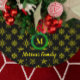 Christmas product that has white snowflakes and a coloured background. A green wreath with your monogram initial. Below is a place to add your name. Make the changes when you Personalise this template. To make more changes, click on Customise it further.