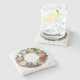 The coasters are gorgeous, a quality feel and heavy weight. They look like a precious archeological find. A rustic stone juxtaposed with a modern floral black and white print. I like the way the print goes slightly imperfect on the cut stone edges giving them a kind-of natural beauty.