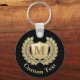 Wreath and shield icon. Custom background colour. Custom monogram. Custom text on both sides.