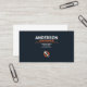 A professional business card in industrial aesthetic for auto repair activities featuring a wrench & gear icon, all on a navy blue background.
