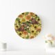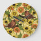 Wrens and flowers on pale yellow large clock