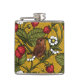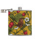 Wrens and strawberries on mustrard hip flask
