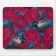 Vector seamless pattern made of hand-drawn fairy-wrens and peonies. Blue and red version.