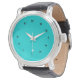 Wrist Watch with Hebrew Numbers, Jewish scribe font style. Beautiful! Black fire on stylish turquoise.