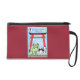 Very cute and large capacity wristlet. It is the size of a pencil bag. We printed a hand drawing of our dogs on both sides and it looks great. Plan to use this on school outings with the kids or casual meet ups with my girlfriends based on the design we imprinted. The printing is very high quality. Looks great on the satin-like material.