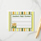These adorable Writable Advice Cards are perfect addition to any baby shower or birthday party. Simply hand these cards to your guests, along with fine tip Sharpie pens. Your guests can then write down any advice they have for the new mummy to be or for the birthday boy or girl. These are printed at a 4.25" x 5.6" size on glossy ultra heavyweight 120 lb. cover stock (card stock). We have an entire line devoted to this design here at our zazzle store under the *Shop by THEME menu tab to include invitations (5x7), Return Labels, Mailing Labels, Envelope Seals, Postage Stamps, Cup Cake Picks, Water Bottle Wrappers, Hershey's 1.55 oz. Large Bar Wrappers, Hershey's Miniature Stickers, Microwave Popcorn Bag Wrappers, Writable Place Cards, Goody Bag Toppers, FLAT Thank You Cards (4x5), FOLDED Thank You Cards (4x5), Favour Tags, Menu Cards, Mint Matchbooks, Lollipop Covers, Bookmarks, Bingo Cards, Bingo Card Markers, Bingo Card Call Out Sheets, Writable Advice cards (4x5), etc.