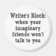Anyone who desires to be a writer has to be a little bit crazy! Reads "Writer's Block: when your imaginary friends won't talk to you."