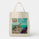 The printing came out very well, better than I had anticipated. The natural color fabric is sturdy with strong seams and comfortable handles. This tote fits easily over my shoulder. As it is filled, the bottom flattens out--very cool! I would buy this product again. This grocery tote holds a lot of groceries! The image quality was very good. The colors were a little darker than I had expected. The darkness may have been due to printing on a natural color fabric rather than on white. The cat design is attractively centered on the tote. The spirit of the design is very lively, just as it appears on the Zazzle website.