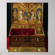 English School's Writing box or table desk, probably painted by Lucas Hornebolte (c.1492-1544) c.1525-27 (walnut & oak with painted & gilded leather) located at the Victoria & Albert Museum, London, UK. The Writing box or table desk, probably painted by Lucas Hornebolte (c.1492-1544) c.1525-27 (walnut & oak with painted & gilded leather) was created around the 16th century.