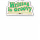 A fun classic retro style writing is groovy style writer department author pride favourite author slogan reading is awesome illustrated library love authors motto design I love writing book lover sticker decal that’s perfect for writers of all genres. Get an epic indie author writing slogan sticker today.