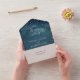 Written in the Stars, modern handwritten script font, the night before celebration, Rehearsal Dinner Invitations, accented teal blue sky background, see filters to change image tone to violet blue, etc. Copyright © 2016-2021 Bombino Designs.
