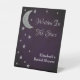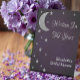 Written in the stars bridal shower. Silver moon and stars against a dark midnight purple background