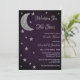Written in the stars bridal shower. Silver moon and stars against a dark midnight purple background