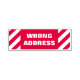 This self-inking rubber stamp design features the words "WRONG ADDRESS", along with a stripe pattern.