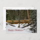 Bridge at Wuksachi in Sequoia National Park Happy Holidays! postcard by Kurt Keller features a beautiful photograph of a quaint bridge in the snow along a hiking trail next to the Wuksachi Lodge with a customisable seasonal greeting. This striking picture was taken with a digital camera in May during a photo excursion in the Northern California Sierra Mountains. This quaint picture of a bridge in the snow is a perfect way to send out your greetings this season and have a joyous holiday.