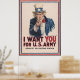 War poster with the famous phrase "I want you for U. S. Army" shows Uncle Sam pointing his finger at the viewer in order to recruit soldiers for the American Army during World War I. The printed phrase "Nearest recruiting station" has a blank space below to add the address for enlisting.