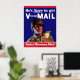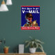 This vintage World War Two poster features a smiling American G.I. reading a letter from home. It declares, "He's Sure To Get V-Mail -- Safest Overseas Mail -- Army Postal Service." Celebrate American and WW2 History with this digitally restored vintage war poster product from The War Is Hell Store.