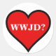 What would Jesus do? Remind others with this sticker. Perfect for Sunday Schools and Christian classrooms.