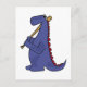 WX- Blue Dinosaur Playing Baseball Cartoon Postcard