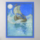 Colourful, vintage, 1908 print of the three boys ( Wynken, Blynken, and Nod) in the wooden shoe made famous by writer Eugene Field.