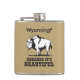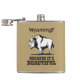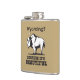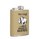 The flask itself is fine. It’s a cheap flask, obviously bought in bulk, however am prepared to overlook that. Given that it is a personalized item, I would have liked to have seen gift boxing instead of the generic packaging. Terrible printing, and/or quality. It’s a cheap, tacky vinyl. It is not cut straight and is also applied in a way that it is overhanging the bottom, causing the glue to catch on items and it will eventually roll and tear, damaging the wrap.