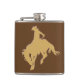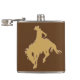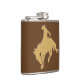This flask features a gold bucking horse and rider silhouette on a brown background. On the back is a field for your name in matching gold. *This design uses image © Graphics Factory.com*