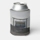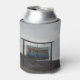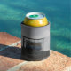 A foam can cooler featuring a photo of the Welcome to Wyoming sign.