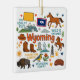 Commemorate your trip to the state of Wyoming with this modern keepsake Christmas ornament, featuring hand-drawn style illustrations of iconic food, animals, landmarks, landscapes, and culture. Personalise the back to mark your US adventure and create a memory you'll hang up on the tree for the Holidays year after year.