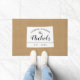 Modern farmhouse personalised doormat with your family name inside your state map. Faux burlap canvas texture background. Click Customise It to add your own text and images and create a unique one of a kind design!