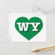 This postcard features a vibrant green heart containing the bold, white, upper case letters WY, the official abbreviation for Wyoming, the cowboy state. The reverse side of the card is blank, awaiting your personalised text or handwritten sentiments.