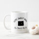 Modern farmhouse Home Sweet Home coffee mug personalised with your family name and city or other custom text. Click Customise It to move the heart to any location on the state map and further personalise the text. Custom coffee mugs make a perfect housewarming or wedding gift for couples and families!