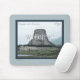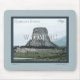A digital painting of the Devils Tower and a herd of bison grazing near a river, with trees scattered at the base of the geological tower and rolling hills in the background. This is not a real landscape scene in Wyoming. This painting was made based on two of my photographs. In white lettering, across the centre of the painting is, "Wyoming". At the top corners is the state motto, "Equality State", and the statehood year, "1890". The painting has a dark blue border. Image Copyright ©2023 Kimberly J Tilley.