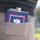 The flask itself is fine. It’s a cheap flask, obviously bought in bulk, however am prepared to overlook that. Given that it is a personalized item, I would have liked to have seen gift boxing instead of the generic packaging. Terrible printing, and/or quality. It’s a cheap, tacky vinyl. It is not cut straight and is also applied in a way that it is overhanging the bottom, causing the glue to catch on items and it will eventually roll and tear, damaging the wrap.