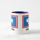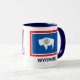 The red, white, and blue flag of the State of Wyoming with the white bison state seal in the middle, and the text WYOMING at the bottom in dark blue. Both sides of the mug have the same image and text.