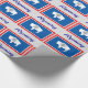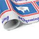 Wrap your gifts in Wyoming style with this paper that features the distinctive red, white and blue Wyoming state flag, complete with the famous bison image and state seal. Beneath each flag image is the customisable text in blue script "Wyoming". The flag images and text are placed on a silver grey background.